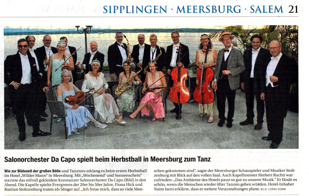 "Der Tanz in den Mai, liebevoll arrangiert vom Konstanzer Salonorchester 'Da Capo' hat sich in den letzten vier Jahren zum Geheimtipp der Konstanzer Szene entwickelt.